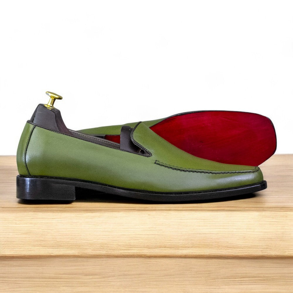 Men's Handmade Green Leather Loafers | Stylish & Comfortable Footwear